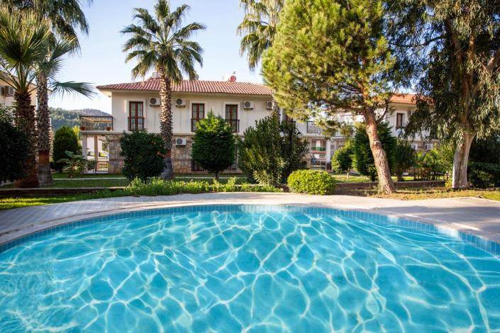 If you are looking for the ideal holiday home an easy walk from Hisaronu resort centre, this could be it! It’s a fully furnished 2-bedroom ground-floor apartment on a beautiful complex with a huge communal pool, kids’ pool, cafe/bar, Turkish bath, parking, and well-maintained garden. It comes fully furnished, with little to do or purchase before moving in. It’s offered at a price to sell, so viewing quickly is advised.