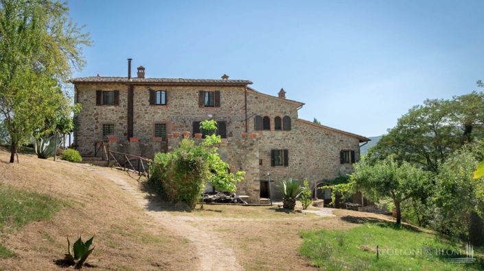 In a superb position with 27 hectares of land with water springs, XVII century estate restored with pool and solar panels for sale near Perugia. Set in 27 hectares (66 acres) of private land with natural water springs, olive groves, unspoilt woodland and stunning views, this historic former farm offers a total of 1000 square meters (10763 sq ft) of buildings preserved for centuries, including a XVII century stone house recently converted into a manor residence with terraces boasting scenic views as far as Perugia, great reception areas, an open gallery, three bedrooms, and a study or forth bedroom. The interiors have a classic rustic feel, with fine finishes, high beamed ceilings, exposed stone and brick walls, grand arches, gorgeous handmade terracotta floors throughout, combined with the latest technology, including biomass and condensing boilers, wood-burning thermos-fireplace, and solar panels for hot water. All doors and windows are in solid wood and fitted with mosquito nets. The main building also houses basement cellars, deposit rooms and three self-contained guest apartment with either one or two bedrooms. The former barn has been fully refurbished and converted into a delightful guest cottage. The landscaped garden features four fountains and a Roman-style stepped pool with a panoramic sundeck surrounded by cypress and pine trees. The agricultural land include olive groves, arable land and even the possibility to replant 1 hectare/2.5 acres of vineyard. Near the driveway, a former chapel building, approx. 150 square meters (1614) sq ft, is in need of restoration yet has great potential to be converted into living quarters with unique features has it still retains its amazing over 6 meters high ceilings and the original altar. A separate basement storage room and a woodshed are also included and offer building extension opportunities for either guest quarters, gym or spa facilities. In an enchanting corner of Umbria just 20 minutes from Trasimeno Lake and the border with Tuscany, with Lake Pietrafitta and Piegaro, with all amenities and shops, at only 3 km, make it perfect both as a charming year-round home or for relaxing vacations. A total of five units ready to live plus options to tailor and upgrade some of the annexes, either for private and exclusive use or to host tourist for their holidays. A private gravel access road is for exclusive use conferring further privacy and security to the entire estate. PROPERTY Ref: PIE3083Location: Piegaro, Province: Perugia, Region: UmbriaType: 960 sq m/10763 sq ft historical farmstead featuring a traditional country house converted into manor residence and 3 guest flats, a 3-bedroom guest cottage, a former church building to be converted and upgraded, annexes and deposits, on a private plot of approx.. 27 hectares/66.7 acresYear of construction: 1600Year of restoration: first structural renovation 1992 – fully upgraded between 2007 and 2014Conditions: excellent – some annexes to be converted and potential for building extensions for further 100 sq m/1076 sq ft of Land: 27 hectares/66.7 acres of land including a 4000 sq m/1 acre park with 4 fountains, 2 ha/4.9 acres olive grove with 80 trees, 6.6 ha/16.3 acres of arable land, 16 ha/39.5 acres of forest, and 1 ha/2.471 acres vineyard to be replantedSwimming pool: 12x5 m, depth 170-150 cm, Roman-style steps, originally build in year 2000 and fully upgraded in 2014 with a paved sundeck, a pergola and 2 outdoor showers; separate technical room equipped with three electric pumps, 2 filters, electrical panel, control unit, automatic Ph regulatorLayout of buildings: