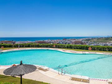 Absolutely beautiful and extremely spacious two bedroom and two bathroom stunning garden apartment in Estepona! The apartment has been maintained to as new standard by the current owners, and is an ideal opportunity for anyone wanting a brand new property but not wishing to wait for construction, and is just 800m walk from the picturesque Estepona old town, and a 20 minutes drive from the popular Puerto Banus Marina to the east or the glamorous Sotogrande Marina to the west The apartment offers simply stunning sea views from every square metre of the property, and briefly comprises; entrance hall leading to a state of the art kitchen, flowing directly into the large lounge and dining area which opens onto a large south facing terrace and gated garden with stunning panoramic views. Two double bedrooms with fully fitted wardrobes and two full bathrooms complete the apartment. The property also has electrical domotica control for the windows, and lift access to the underground car park, where the property has a private parking space and storage room. The community offers large landscaped gardens with two swimming pools, one for adults and one for children. You can also enjoy 2600m2 of sports area with padel and tennis courts, also with a large Reebok gym. An absolute must view apartment in a superb location!