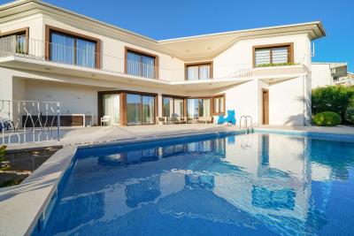 In front of the villa there is a recreation area with a swimming pool, a well-kept garden with greenery and landscape design, as well as a barbecue area.