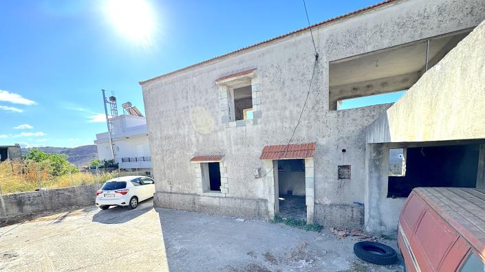 For sale: unfinished village house on 2 levels in total size of 212 sqm on a private plot of 406 sqm situated in the center of Koumi village at 15 km from Rethymno, sandy beach and the sea.