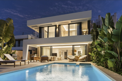 Stunning super modern luxury detached west facing villa located within a sought after gated and private community in Estepona. The villa offers fabulous golf and sea views, with a fabulous roof top terrace complete with Gymnasium and rooftop Jacuzzi, and has been designed throughout blending contemporary architecture with modern interiors and an open layout to enjoy indoor/outdoor living.