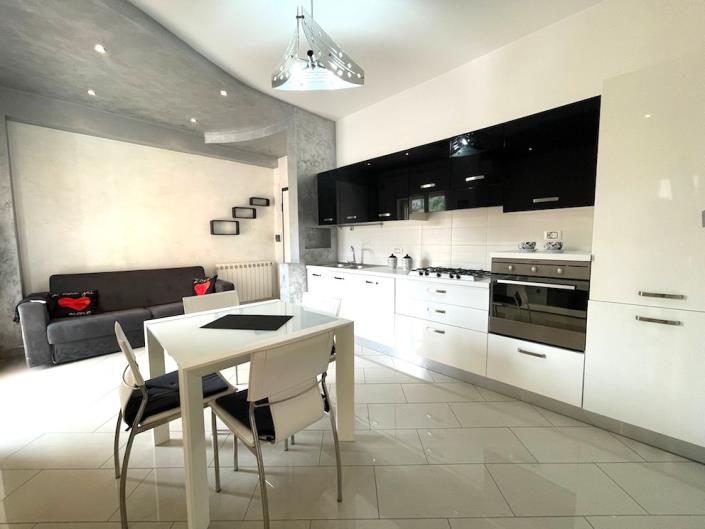 We offer for sale in Scalea in a green and quiet setting, a modern apartment located on the first floor in a small building. The apartment is completely renovated and features new electrical and plumbing system, reinforced front door, double balcony doors, mosquito nets, air conditioning and radiators with methane gas. The apartment comes with a large and bright living room with kitchen and a spacious terrace, a corridor, two bedrooms with terrace, a bathroom with window and shower. A garage of 11 m2 is available for sale. Furniture is included. About 1 km to the center and 1.5 km to the beach. Excellent choice for a holiday home or for residential use. Contact us for more information.