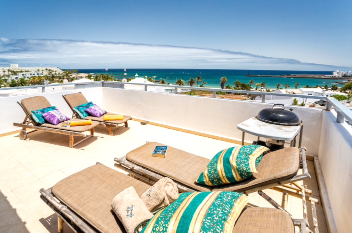 Enjoy the impressive private terrace, equipped with sun loungers perfect for soaking up the Lanzarote sun. Additionally, it has a shaded area with a barbecue, sheltered from the wind, ideal for outdoor meals with family and friends.