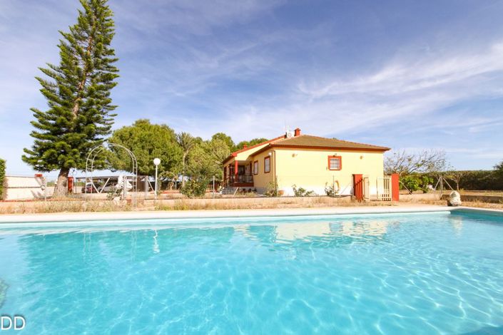 COUNTRY HOUSE IN ELS POBLETS.An ideal home for country lovers without giving up all the amenities and advantages of the city. It is located in a quiet area of Els Poblets, just 1 km from the sea and 9 km from the center of Denia. The plot is 11300m a part is of the house with a pine forest, 15x5 swimming pool, covered parking for several cars, barbecue area and a wooden house that is used as a summer kitchen. Another part of the land is fenced and is perfect for a horse stable or for farming. The main house consists of two floors and a large garage in the semibasement. All rooms are spacious, equipped with air conditioning and heating, double glazed windows with blinds. On the ground floor of 200m2 we find an entrance hall, living room with fireplace, dining room, glazed terrace with fireplace and access to the outside, the closed kitchen, a laundry room, the 4 bedrooms with two bathrooms; On the first floor there is a 50m2 mezzanine; The basement floor of 140m2 in addition to the garage has a storage room, a laundry room and a toilet.The house is conscientiously made with many details for the comfort of the family.