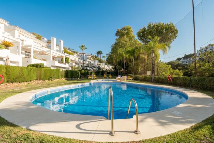 Incredible three bedroom duplex apartment/Townhouse located within a gated and private community in La Quinta. The property is extremely private. with access to large terraces and great sized private garden. The community is situated frontline to the very popular La Quinta Golf course, and is around 20 metres away from the beautiful community swimming pool. The property is beautifully designed with a spacious living area that includes a dining section. Large glass doors open onto the terrace and private garden, providing stunning views through the surrounding forest to the golf course. At this level you will also find a spacious living room, a fully equipped kitchen with an island unit, guest WC, plus a master bedroom and an ensuite bedroom, again leading directly onto the terrace and garden. The first floor is home to two additional bedrooms - one with a charming balcony with stunning golf course views, and the other bedroom to the front of the property, both sharing a large family bathroom. Additional features of this residence include fitted built-in wardrobes, a double exterior parking space outside the property, and a private storage room.