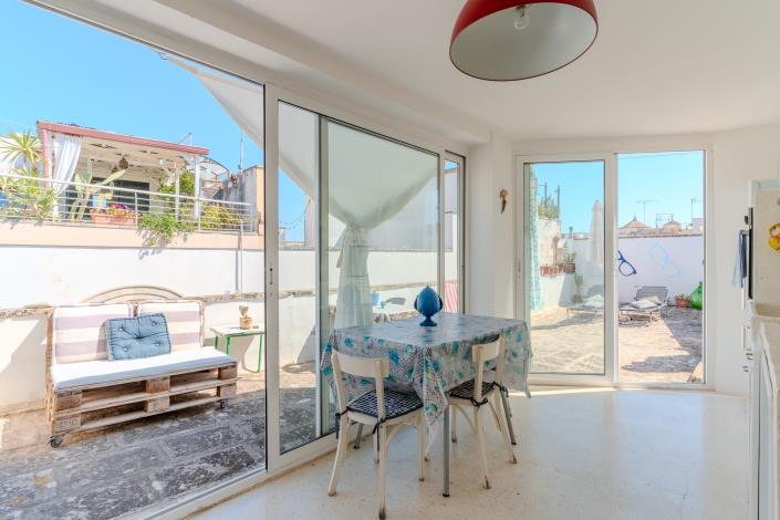Ascending an internal staircase, you reach the rooftop area, where a well-designed open-plan kitchen is located. This opens onto a large terrace, perfect for outdoor dining, relaxing, or enjoying the evening breeze with enchanting views over the historic city’s rooftops.