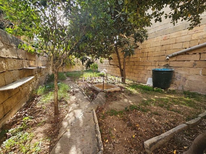 An unconverted but structurally sound TOWNHOUSE situated in an urban conservation area (UCA) of Rabat. The property layout comprises a welcoming reception area, a formal sitting room, a study area, a central courtyard, dining, kitchen and living area with access to a 110 sqm back garden and a stairwell leading to the upper floor. This floor comprises, two double bedrooms and a single bedroom, a bathroom, a rooftop and a landing leading to another rooftop area and a washroom.