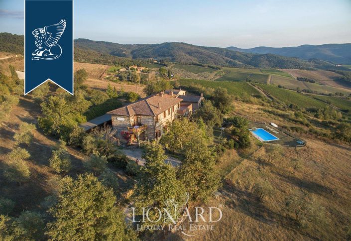 This Tuscan resort for sale, located in the heart of Chianti, has belonged for years to a noble family in the area. Recently transformed into an accommodation business and three enchanting apartments, the property has been created from one wing of the estate, with an independent entrance, a private garden, a parking and a swimming pool.
