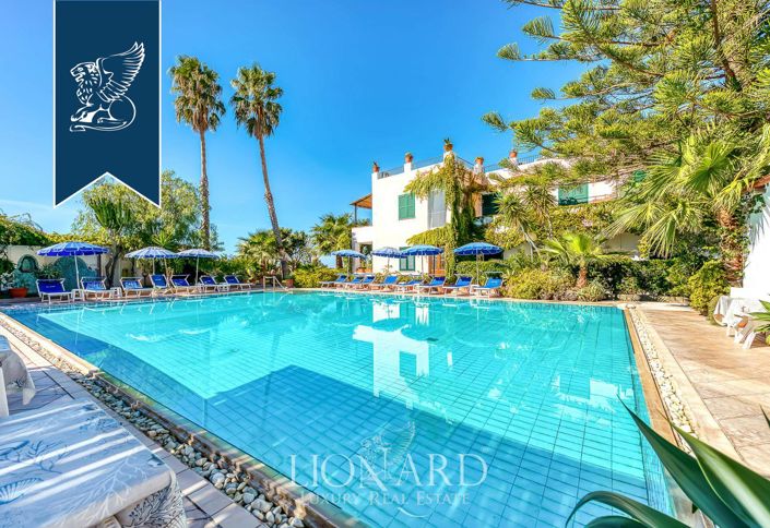 This property, with an internal surface of almost 3,000 sqm, is decorated in a typical Mediterranean style and houses 33 comfortable rooms, most of which with a beautiful sea view. On the ground floor there is a big terrace overlooking the swimming pool, a large lounge next to a restaurant and a welcoming entrance hall with a fireplace.