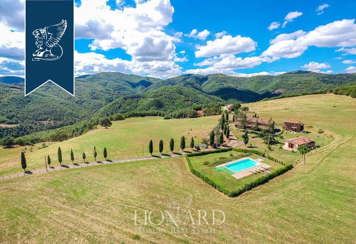 This prestigious, finely-renovated complex for sale in the province of Arezzo houses a 171-hectare agricultural company with a resort and a breeding farm of fine cattle.