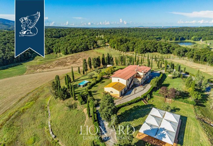 This vast farmstead measuring over 700 hectares is for sale in a charming landscape in Collesalvetti, in the province of Livorno.?The property includes a Tuscan farmhouse, which can be reached from a path adorned with cypresses and is located right in the center of the estate and offering a spectacular panoramic view that sweeps across woods, lakes and cultivated fields. Surrounded by a large garden with gazebo and swimming pool for exclusive use, the farmhouse is home a magnificent apartment, located on the first floor, consisting of a large living room with a fireplace, a kitchen, five bedrooms and four bathrooms.?Not far from the cottage there is a lake owned by the property, where you can organize pleasant picnics and barbecues in the countryside or go fishing; there are then a restaurant and a rustic-style farm building.? Another building, carefully furnished in the typical Tuscan style, includes five spacious apartments with nice outdoor spaces offering views of wheat fields and olive groves, with about 7,000 plants, which respectively produce ancient grain flours and fine organic oil, as well as alfalfa, clover, and flax.?Ref. 5775?