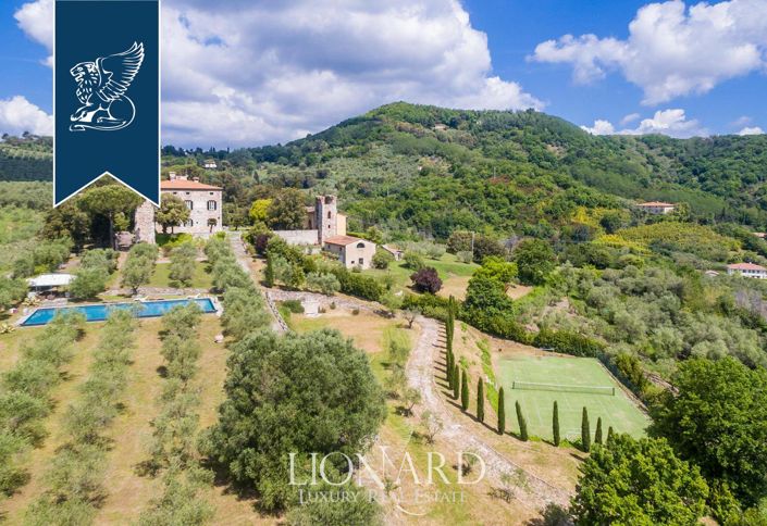 This luxury period estate for sale is located near Pisa. This three-storey property is entirely made of stone, has three small towers, measures 1,200 m2 and features spacious and bright rooms decorated with frescoes. This property is surrounded by a 3-hectares park, home to a beautiful olive grove and a swimming pool and a tennis court.