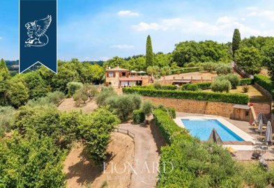 Perched on a hill between the scenic Crete Senesi and Val di Chiana, this charming farmhouse is a true Tuscan gem. The property features 243 sqm of beautifully renovated interior space and a sprawling 6,000-sqm garden, complete with olive trees and a large swimming pool. The farmhouse retains traditional Tuscan elements such as terracotta floors, exposed brick arches, and wooden beam ceilings, while modern amenities ensure comfort.