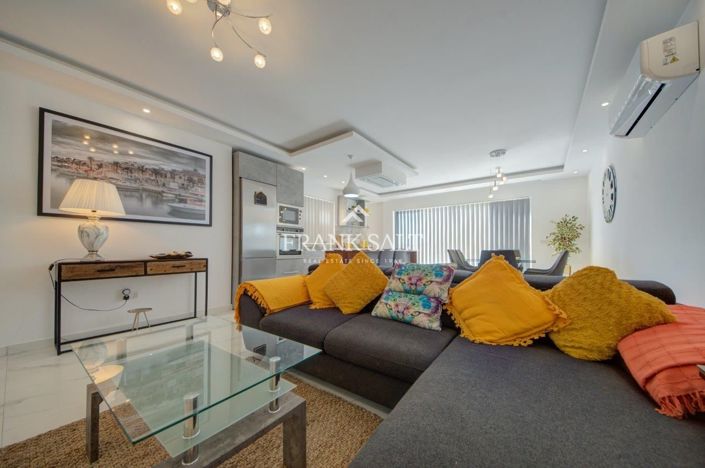 A newly built, finished and beautifully furnished PENTHOUSE in a quite street in Qala, with two very large terraces back and front, and its own roof ownership and airspace. This property has been lovingly finished and furnished by the owners as their holiday home. The property comprises of 3 bedrooms, main en suite and family bathroom. The very light and sunny living area opens onto the large front terrace with town views. The front bedroom also opens onto the front terrace. The back bedroom opens onto the rear terrace with washroom and views over the farmland at the back. Definitely a property with ample outdoor space and a must to view.