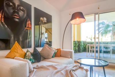 Luxurious, completely renovated two-bedroom, two-bathroom residence with a 20m2 terrace and beautiful swimming pool views in La Duquesa. Within a convenient 3-minute drive or 25-minute walk to the picturesque local marina, a 10-minute drive to Sotogrande Marina, and a 16-minute drive to Estepona Marina, the location is unbeatable. The apartment boasts a spacious entrance hall leading to two generously-sized bedrooms, with the master bedroom featuring a large en-suite bathroom and direct access to the terrace. The second bedroom also has ample space and access to the family bathroom. The fully-equipped kitchen is fitted with modern appliances and opens to the open-plan lounge and dining area, providing the perfect space for entertaining. From here, you can step out onto the terrace and take in the stunning views of the swimming pool, pond, and beautifully maintained tropical gardens. The apartment is fitted with hot and cold air conditioning throughout and has an underground garage and a private underground storage room. This private, gated and 24 hour secure community offers a choice of five beautiful swimming pools plus a paddle tennis court. The closest amenities are a 15-minute walk away (1.3km) and the beach and Marina are just 25 minutes walk away (2.1km). This completely unique apartment is a must-view property!