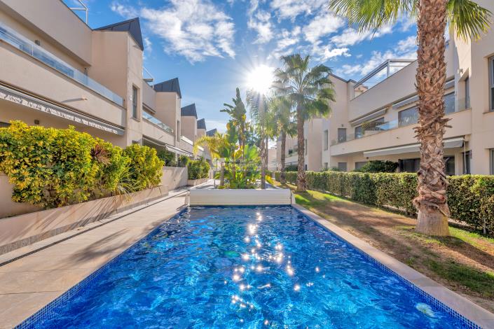 Wake up to a beautiful view from your own roof terrace, where you can enjoy a cup of coffee while looking out over the area. For those who love to swim, there is a communal pool to cool off on hot summer days. The apartment also has underfloor heating in both bathrooms, ensuring year-round comfort.