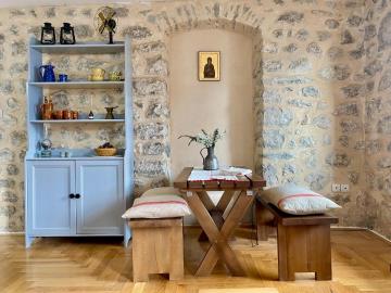 This stylish apartment in Perast offers views over the sea and the nearby historic church, and is a perfect blend of modern comfort and traditional Mediterranean charm. Located in a UNESCO heritage site, the apartment features an open-plan living room, kitchen, and dining area, creating a spacious and airy atmosphere. The recently renovated bathroom adds a fresh, contemporary feel, while the exposed stone walls infuse the space with a genuine Mediterranean vibe.