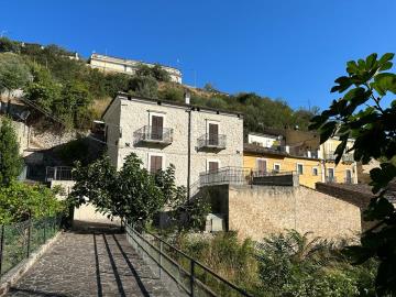 We sell a wonderful stone house with terrace and garden in the medieval hamlet of Capestrano. The property is in good condition and immediately habitable; disposed on three levels it is composed: on the ground floor we find four cellars and a garage; on the first floor there is a living room, a storage, and a kitchen with fireplace, the latter has access to a wide, panoramic terrace of about 20 sqm; lastly the second floor is composed by two wide bedrooms, both with balconies, and a bathroom that lacks sanitaries. Completing the property is a garden on two levels where we find various fruit trees such as figs, cherry, black cherry, nuts, grapes, the first of about 90 qm and the second of about 200 sqm and an accessory of approximately 120 sqm. With the possibility of purchasing a bordering dependance with terrace and garden. The property enjoys a breathtaking view and a great position since in a few minutes it is possible to reach all the essential services. Capestrano is a medieval hamlet with a beautiful castle from 1200 belonging to the Medici family of Florence. It has the charm of the ancient fortified village, with the Tirino river below, cleanest river in Europe, where you can make beautiful canoe excursions. In the village there are food shops; butcher-grill where you can taste excellent local meat accompanied by excellent Montepulciano d'Abruzzo wine produced right at the feet of the village, in the fertile valleys; bar; restaurant; agriturismo; bank and post office; pharmacy and a swimming pool not far from the center. For mountain lovers, the Gran Sasso and the Majella, both closeby, offer unique scenarios to discover Abruzzo, the greenest region of Italy. The position of Capestrano is excellent because it allows you to reach both L 'Aquila and Pescara (and its international airport) in about 50 minutes, Rome in just under two hours.