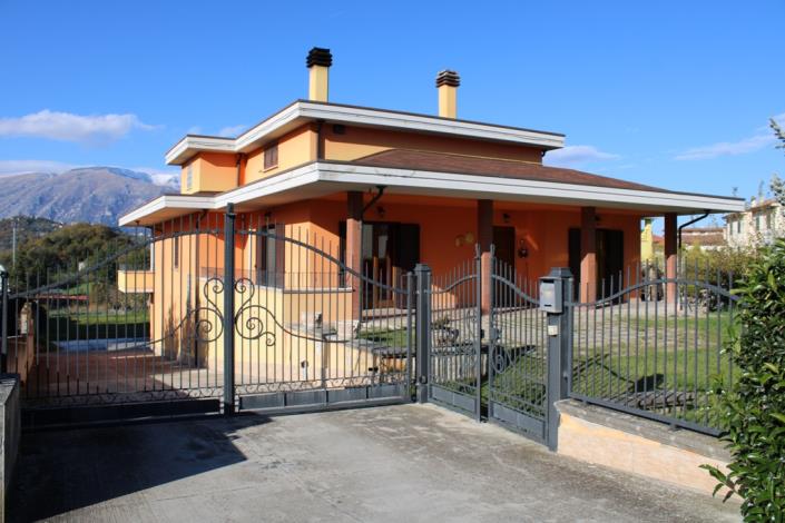 Roccascalegna, Abruzzo. Detached, new Villa of 400sqm, 1km to a tourist village, 1300sqm flat garden, garages, mountain views, easy access, peaceful. Walking distance, 1.3km, to the shops and a spectacular medieval castle, this tourist attraction is full of character offering basic shops, 3 bars and a restaurant. The location is also close to Lake Bomba, 12km away. The house can easily be split into 2 separate apartments with private front doors. The Property has three floors. The ground floor is the main apartment, of 160sqm excluding walls and balconies, completely finished and gas central heating or organic burner for heating. The finished apartment has 3 bedrooms and 2 bathrooms. There are internal stairs to the attic that can be converted into a further 80sqm living space, maybe bedrooms as there are limited windows. The basement is presently used as 2 double garages of 200sqm but could be converted into a separate apartment. Presently the floor is an unfinished shell. The doors and windows have already been purchased for this floor. The views are breath-taking and there is a terrace and a balcony to enjoy the outside peace with long balconies too. The property is connected to mains water, electricity, gas and sewage. It is 1km to the village center, 12km to Lake Bomba, 28km to the city of Lanciano, an hours drive to Pescara Airport, and 3 hours drive to Rome.