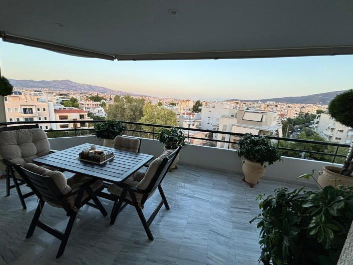Superbly located in the prestigious area of Chalandri is this beautiful and fully renovated penthouse apartment. Featuring amazing panoramic views to Penteli and Ymittou mountains from the extra large veranda providing 12+ square meters of outdoor space. Conveniently located just 5 minutes off Kifissias Avenue, 10 minutes drive to Hygeia Hospital and Golden Hall luxury shopping mall, and just 4 kilometers to the highway for the airport. The penthouse occupies the entire top floor making for an extremely quiet living experience. A children’s playground is directly outside the front door. The owners have carefully designed the entire space using high quality luxury materials, with an exceptional eye for detail, rivaling even the newest properties on the market in space, excellence, and stunning views. All the plumbing, wiring, electrical outlets and switches, windows, floors, and doors have been replaced brand new. Hardwood floors are found throughout with high end marble featured in the kitchen and veranda/terrace. The large living and dining room feature built-in bookshelves, fireplace, and banquette seating for a dining table. The well lit designer kitchen features an abundance of storage space, prep areas, and a balcony perfect for a gas barbecue. Each bedroom is exceptionally equipped with floor to ceiling custom closets as well as a balcony. The master bedroom has a large en-suite bath designed for maximum space and eye appeal as a luxury hotel bath. A large storage room of 15 square meters is found in the basement. Private and secure gated parking is at street level. Heating is provided by an autonomous gas system while hot water is provided by solar water heating with a 160 liter tank and having a back up to the gas and electric system. For added pleasure there is wiring for a sound system and for your security there is wiring for an alarm system. Asking price is 525,000 Euros, interior is 120 square meters, and the property was built in 1995. Make an appointment to view it now!