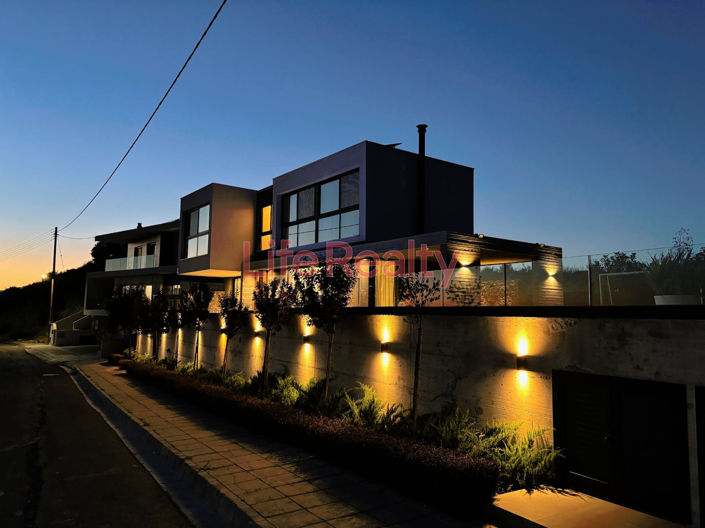 This exceptional property features a spacious living and dining area that seamlessly connects to a modern kitchen, along with a guest WC, creating an inviting and functional space for everyday living. The villa boasts in the upper floor four spacious bedrooms, one with an en-suite bathroom. Moreover, on this floor, you will find a separate bathroom, a laundry room, and an office.