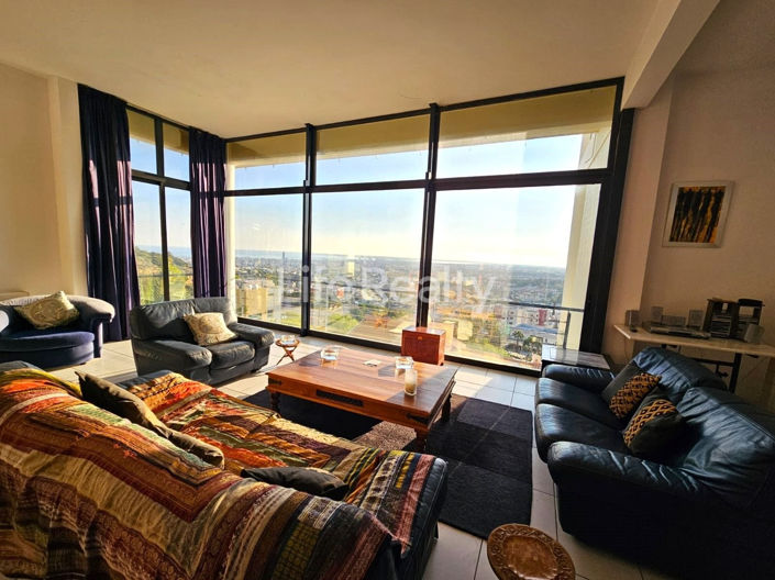 The first residence spans two floors. On the ground floor, a living room offers breathtaking city and sea views, a kitchen, an office, and a guest W/C. Upstairs are three bedrooms, including one with a walk-in closet, a family bathroom, and spacious verandas. The top floor provides additional space for two extra bedrooms.