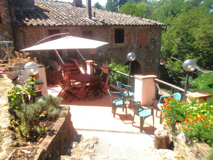 At the main access we have land/ garden, of circa 1500 sqm, on which there are some chestnut trees and paved space with barbecue area, ideal for outdoor dining on sunny days.