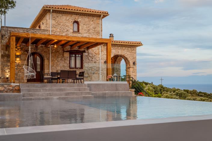 The main property is split across two levels with thoughtful design and traditional features; maintaining it's Greek authenticity while still keeping up to date with modern style - constructed in Zakynthian stone to the highest of standards. On the lower level is a self-contained guesthouse with private terrace.