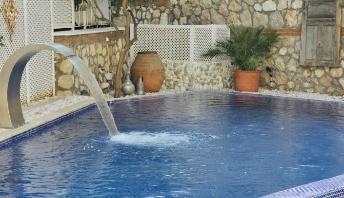 This elegant villa offers an expansive outdoor area, perfect for enjoying the Mediterranean lifestyle. It boasts two large gardens on either side of the property. On the right, you’ll find a private swimming pool, while the left side features a charming patio and spacious seating area, complete with a barbecue—ideal for hosting evening gatherings.
