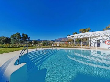 Ground Floor Apartment for sale in Estepona with 2 bedrooms, 2 bathrooms, 1 en-suite bathroom, and orientation south, with communal swimming pool, private garage, and private garden.