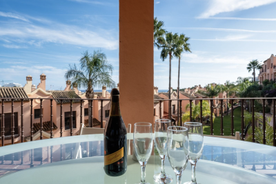 Exquisite three-bedroom townhouse is situated within a highly desirable gated and secure sought after development in Estepona, offering an exceptional blend of space, comfort, and breathtaking views. Fully furnished and meticulously designed, this family home boasts spacious interiors, high ceilings, and expansive terraces that overlook the community and extend to the sea. Spread across two levels plus basement (and the potential to extend onto the roof top terrace!), the property begins with a grand double-height entrance hallway that leads to a guest WC, a fully fitted kitchen with a breakfast area, and an open-plan lounge and dining space. This area flows seamlessly onto a generously sized covered terrace, perfect for relaxing or entertaining while enjoying the serene surroundings and the views to the sea. The upper level features three double bedrooms, two of which enjoy sea views, and two bathrooms. A private terrace on this level enhances the sense of space and connection to the outdoors. There is also the potential to add an internal staircase to access a rooftop terrace of approximately 60 square meters. This rooftop oasis would offer unparalleled panoramic views of the sea, mountains, and a nearby golf course, making it a perfect spot for relaxation or entertaining. On the lower level, a semi-basement area includes a spacious private double garage, providing secure parking and additional storage. The development is conveniently located just 1.2km (a 16-minute walk) from a large supermarket and essential amenities and 1.5km (a 19-minute walk) from the nearest beach, offering the perfect balance of accessibility and tranquility. This stunning property presents a rare opportunity to own a beautifully appointed home in one of Estepona's most sought-after areas. It is an ideal choice for families or anyone seeking a blend of luxury, comfort, and proximity to the best the Costa del Sol has to offer.