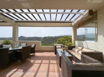 Luxury two bedroom penthouse apartment designed by a renowned Scandinavian company. This spacious apartment offers breaThe duplex penthouse is well planned, naturally bright and spacious throughout, with a modern Scandinavian design, top quality kitchen and bathrooms, air conditioning hot and hold, and a basic home domotic system. The development is fully gated, and has additional communal car parking outside of the community. The beach and general amenities are around a 5 minute drive from the apartments (2.8km). A great opportunity for anyone wishing to be close to the beach and Puerto Banus, yet within stunning natural surroundings offering truly stunning views!