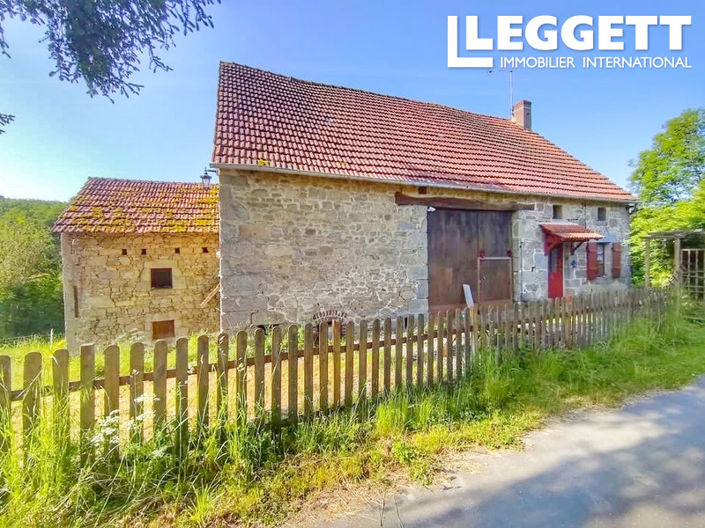 A very pretty, detached stone cottage with 2 bedrooms and attached barn on closed land of 3740m2. It is a wonderful tranquil spot and there are beautiful views over the woodland and the river, which flows through the property. The current owner has added a stunning wooden terrace to the rear of the property to take full advantage of the views. The large, attached barn could be converted to provide more living space and the outbuildings could be made into a gite, if required. It is situated on a tranquil countryside 'chemin', which is a no through road.