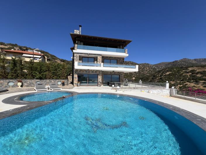 Lasithi, Agios Nikolaos. For sale: luxury villa of 711 m2 with a private pool of 71.36 m2 on a plot of 2.472 m2 with amazing sea views. Specifically, it is a residential complex consisting of a central villa of 445 sq m and two ground floor apartments of 94.11 sq m and 74 sq m with terraces that have an unobstructed sea view. Also, in the complex there is an outdoor kitchen - barbeque of 100 m2, closed parking for four cars of 100 m2 and warehouses with a total area of ??150 m2. The central villa, which is arranged on three levels, offers a total of five bedrooms with their own bathrooms, of which the one is 143.71 sq m and is the second floor. On the ground floor, which is 140.85 m2, is the single room with living room, dining room, kitchen and a wc. The first floor consists of four bedrooms with their own bathrooms. In general, the complex is located on a hill with a panoramic unobstructed view of the sea and is very close to the town of Agios Nikolaos. The property can be used either for private residence, or for tourist exploitation as a small hotel of furnished apartments. Price negotiable.