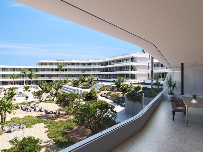 New build. Atlantic Homes in Costa Adeje. This 2nd floor apartment is in the north block. The property comprises of 3 bedrooms with fitted wardrobes and 2 bathrooms. The interior is 84m2 with a terrace of 37m2, and communal heated pool, garden and sea view and the terrace receives sun all day. The price included a parking space and storeroom. Due to be finished in January 2025. If you want a brand new property this is it.