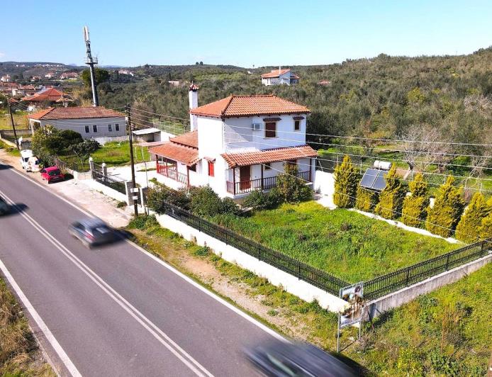 A wooden staircase leads upstairs to the master bedroom, bathroom with a bathtub and a kitchenette.A beautifully large fenced garden of 930 m² houses the parking space, barbecue and lawn area.This property is suitable for a permanent residence or a second home, the nearest golf course is 20 km away and the popular town of Pylos 24 km.