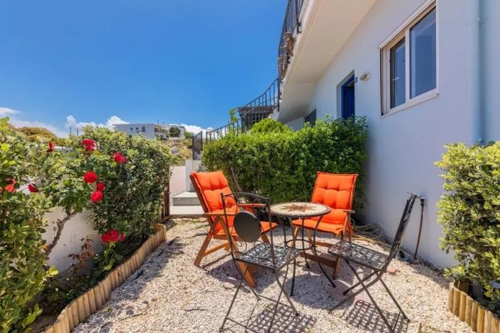 Heraklion, Lygaria. For sale is an elevated ground floor apartment of 80 sq m in a private settlement with a beautiful sea view and just 500m from a sandy beach. Specifically, it is fully furnished and electrically equipped and offers an open plan space with kitchen, living room and dining room, two large bedrooms, a bathroom, a 4 sq m storage room and a large terrace. In addition, it has autonomous heating with fan coil and air conditioning, aluminum frames and an underground parking space. The apartment belongs to a private settlement that provides a communal swimming pool, restaurant, private beach, private marina, tennis court and 24-hour security with a guard at its entrance. It is an ideal choice for owner-occupancy, or an investment for tourist exploitation, as it combines the quiet life in a seaside location with direct access to the VOAK to the city of Heraklion.