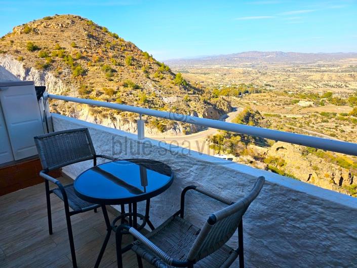 One of the standout features of this apartment is the private terrace, accessed through double glass doors. This outdoor space offers breathtaking views of the surrounding mountains and countryside, making it the perfect spot to unwind and take in the beauty of Mojácar.