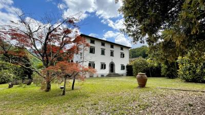 In the immediate vicinity of the historic center of Bagni di Lucca, this Villa on four floors of 665 m2 is for sale. with garden and surrounding park of 2,500 m2.