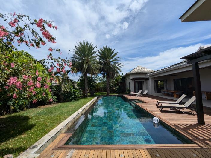 This stunning villa, blending modern tropical elegance with Balinese architectural touches, is located in one of the most desirable areas of Grand Baie, just five minutes from the region’s idyllic beaches and vibrant amenities.