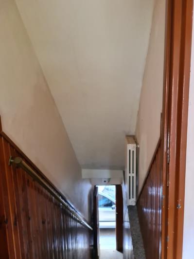 The second floor has a large room which is used as living room kitchen, with a utility room and bathroom, and a terrace. It is possible to create a roof terrace.