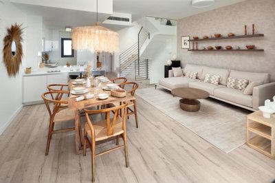 These south west facing modern 3 and 4 bedroom semi-detached houses are elegantly designed and will be built to the highest building standards. They have spacious and bright living spaces, large gardens, open terraces and impressive solariums. The terraces offer stunning views of the sea and Gibraltar.
