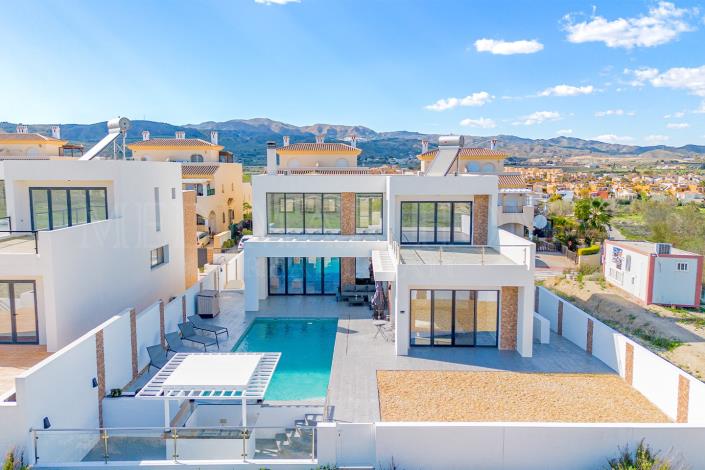 Welcome to this stunning ultra-modern villa, located on the Huerta Nueva estate of Los Gallardos. This exceptional property sits on a private 500m² plot and boasts a spacious 174m² layout over two floors, complemented by an additional 151m² basement. Featuring three bedrooms, three bathrooms, and a private 8m x 4m pool with a swim-up bar and in-pool stools, this breathtaking home has been finished to an impeccable standard.