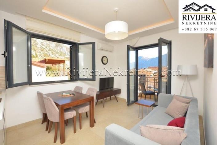 A one-bedroom apartment with a stunning sea view, covering an area of 36m², is for sale in a luxurious complex with a swimming pool and fitness center, surrounded by beautiful greenery in the Morinj settlement, Kotor municipality.