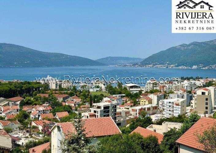 For sale is a furnished two-bedroom apartment with a stunning sea view, located in the residential area of Mazina above the center of Tivat and Porto Montenegro Resort and Marina.