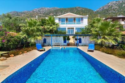 This detached villa located in the Kördere area of Kalkan is a legal property with zoning laws and occupancy permit, unlike many illegal structures in the region. It has an independent title deed.