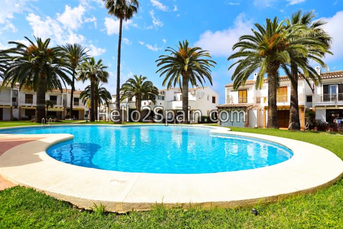 This 2-bedroom townhouse has been owned since 2004 by the current owner. With two double bedrooms, two bathrooms, open plan lounge kitchen diner, communal swimming pool, private terrace, walking distance to the beach and bars and restaurants and supermarkets.