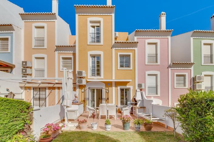 **EXCLUSIVE TO AFFINITY SPAIN - COMING TO MARKET IN MAY 2025** Fabulous three-bedroom townhouse situated within a picturesque development on the Casares Costa. Located just a short walk to the beach, local beach restaurants, and all general amenities (850 metres, 11 minutes walk). Communal facilities in this enclosed and gated community include private parking, two swimming pools and extensive tropical gardens. The property offers three bedrooms, plus an unusually large private garden and patio area with plenty of room for a dining table and chairs, as well as several sun loungers. Built over three levels, the ground floor comprises of a bright and airy living room with a fireplace, dining area, and an open plan fully fitted kitchen. This level has direct access to the private garden and patio, plus a further patio can be found to the front of the property. The first floor has two double bedrooms and a family bathroom, whilst on the second floor, you find the master bedroom and en suite bathroom. Further features include; a large private garden, private parking for two vehicles, underfloor heating in the bathrooms and an alarm system. An absolutely perfect property for anyone wishing to live life without a car in a great location!