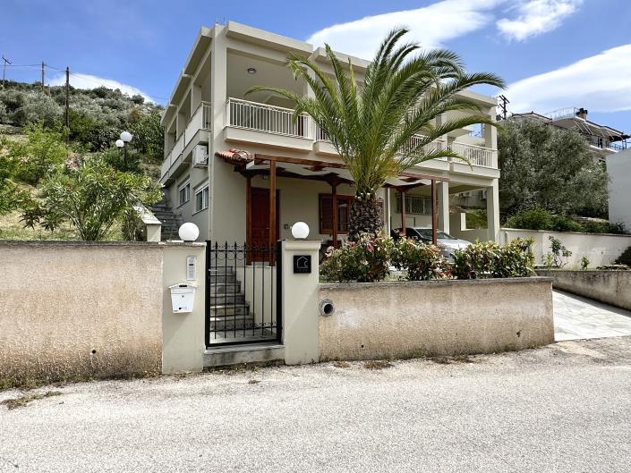 A rare opportunity just 5 minutes from the heart of Nafplio’s historic Old Town! Located in a quiet and well-maintained neighborhood that offers all everyday conveniences, this spacious detached house of 270 sq.m., built in 1990, sits on a 1,200 sq.m. plot with a beautifully landscaped garden, expansive terraces, and unobstructed views of the surrounding mountains and open horizon. The property is arranged over two levels. The ground floor features an independent 50 sq.m. studio apartment with a kitchen-living area, bedroom, and bathroom—ideal for guests or rental income—plus a large garage and 55 sq.m. of storage space. The main residence is located on the upper floor (170 sq.m.) and includes three bedrooms (one master), a bright living room with fireplace, a separate kitchen, and a spacious shared bathroom. Comfort features include autonomous oil heating on each level, air conditioning units, solar water heater, radiators, and a security system. The floors are tiled and natural stone, and the windows have traditional wooden frames. Outdoor spaces include 80 sq.m. of verandas, a courtyard, a tree-filled garden, and direct access from an asphalt road, with the façade facing a municipal street—ensuring brightness and ease of access while maintaining peace and privacy. The property offers 120 sq.m. of remaining building allowance and the potential for a swimming pool. With no shared expenses and pet-friendly amenities, this home is ideal as a permanent residence, vacation home, or investment for short-term rentals. A residence that blends functionality, comfort, and aesthetic charm — a true life investment in enchanting Nafplio.